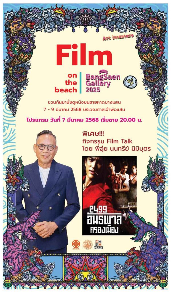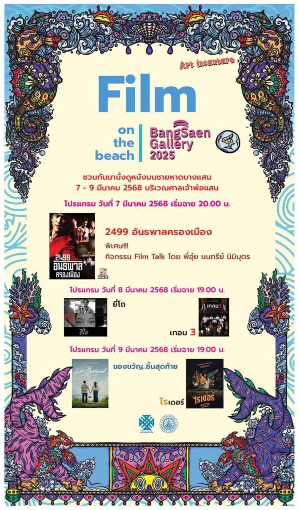 ชวนกันมานั่งดูหนังบนชายหาดบางแสน กับกิจกรรม FILM ON THE BEACH ในเทศกาล BangSaen Gallery 2025 ระหว่าง 7-9 มีนาคม 2568 บริเวณศาลเจ้าพ่อแสน หน้าโรงแรมบางแสนเฮอริเทจ