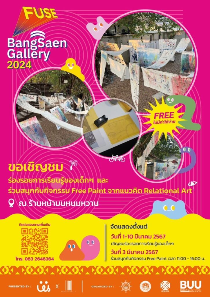 ขอเชิญผู้สนใจเข้าชมร่องรอยจากการเรียนรู้ผ่านการเล่นมาจัดแสดงในชื่อ Free Paint, Free Play ตั้งแต่วันที่ 1-10 มีนาคม 2567 ภายใต้งานเทศกาล Bangsaen Gallery 2024 ณ ร้านหน้ามนหนมหวาน